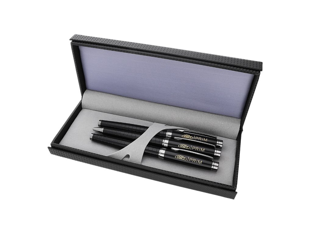 Luxusní kovová sada s logem PRIM - kuličkové pero, roller a plnicí pero v dárkové krabičce