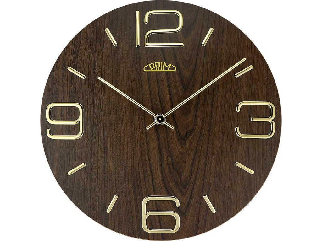 Dřevěné nástěnné hodiny PRIM Timber Noble mají výrazné 3D číslice a indexy z kovu. Působí ušlechtilým a jednoduchým dojmem. Hodiny jsou vybaveny strojkem Quartz Taiwan.