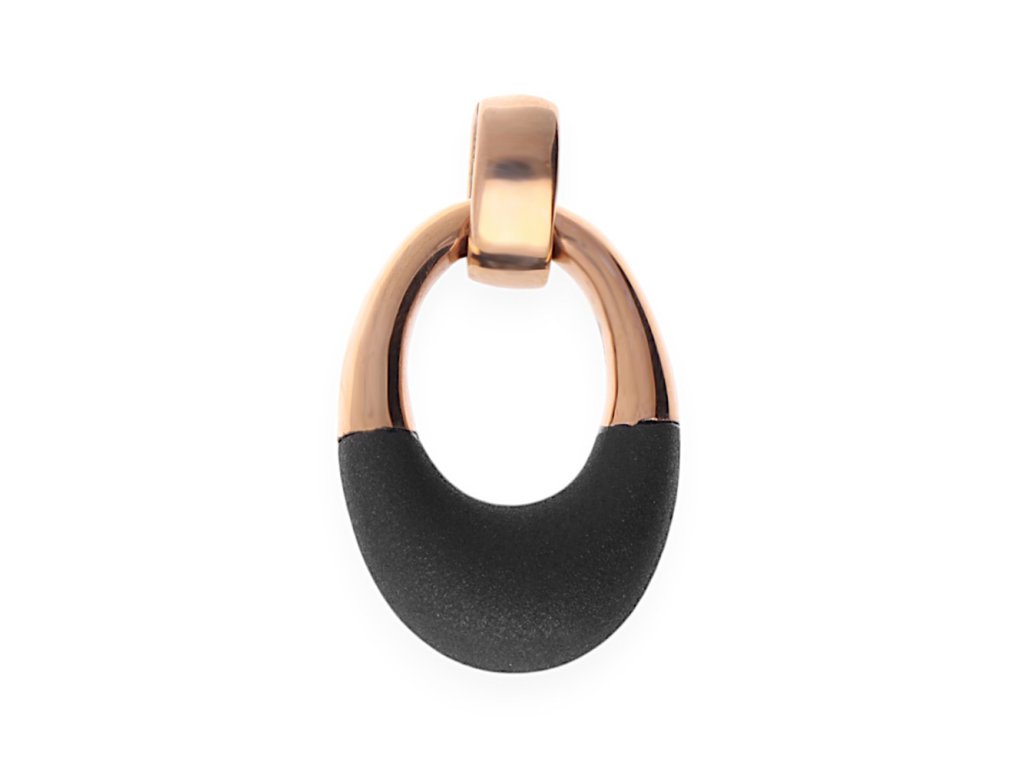 Růžově zlacený dámský přívěsek z kvalitní chirugické oceli ve tvaru oválného kroužku.