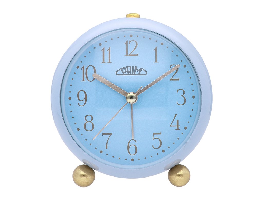 Kovový budík PRIM Candy Pastel Alarm v něžném designu. Tento budík je výrazný díky sladkým pastelovým barvám s detaily a čísly ve zlatém provedení. Jeho nožky mají netradiční vzhled. Budík Vás rozhodně nebude rušit při snění díky vteřinové ručičce s funkcí plynulý chod. Jeho eleganci potrhuje decentně vypouklé sklo.