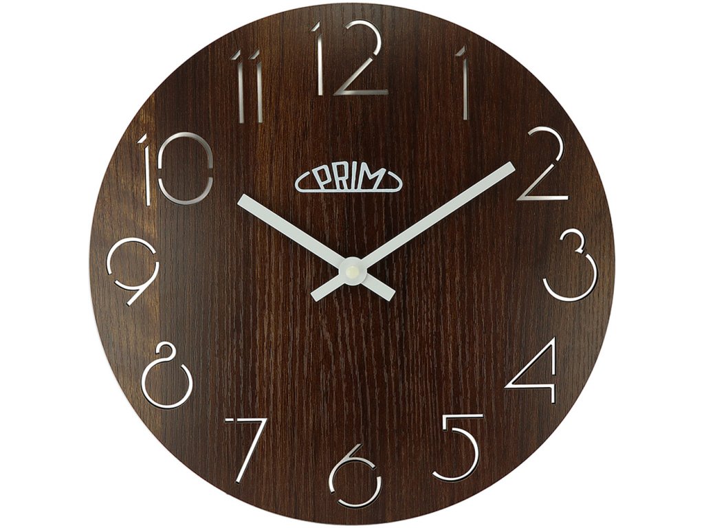 Dřevěné hodiny z MDF PRIM Natural jsou zvláštní svým osobitým vzhledem. Čísla jsou precizně vyřezány do samotného těla hodin. Baterie AA není součástí balení.