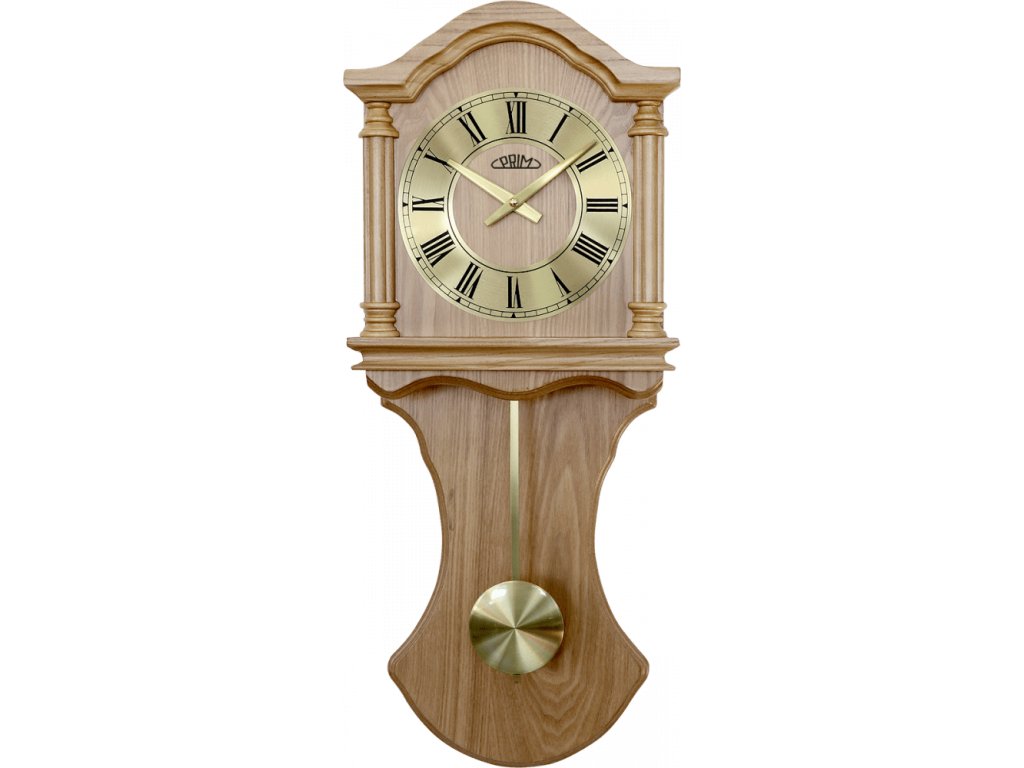 Dřevěné nástěnné hodiny PRIM s historickým nádechem.