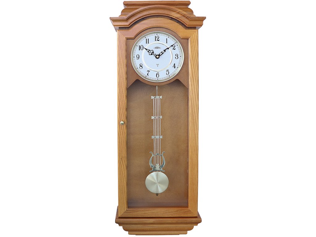 Rádiem řízené dřevěné nástěnné hodiny PRIM Radio Melody III s klasickým retro vzhledem a kyvadlem ve tvaru připomínajícím struny hudebního nástroje. Tyto kyvadlové hodiny každou hodinu přehrají melodii a odbíjí. Hlasitost odbíjení je možné nastavit nebo ho lze úplně vypnout.