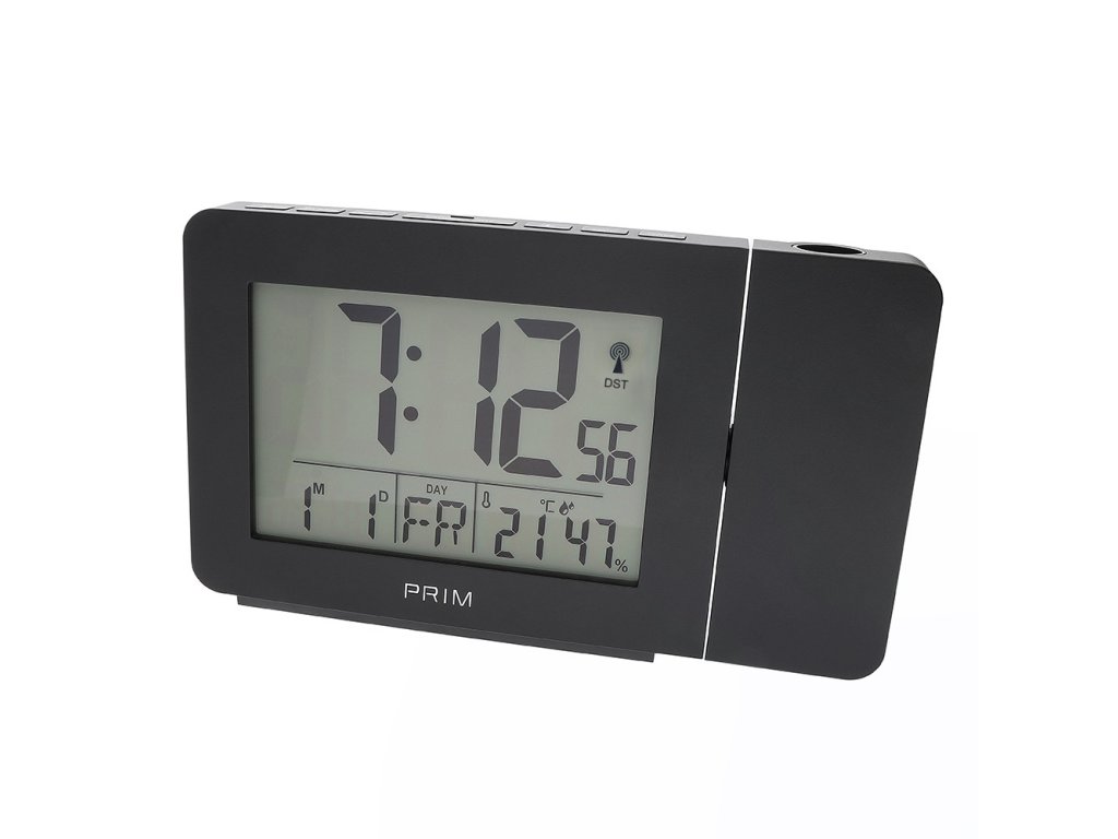 Rádiem řízený multifunkční digitální budík PRIM s laserovou projekcí, teploměrem a vlhkoměrem. Umožňuje nastavení až dvou různých časů buzení, může tak posloužit pro buzení dvou osob. Balení zahrnuje 5 V DC adaptér pro napájení ze sítě. Před výpadkem elektrické energie, jež by způsobila vyresetování nastavení budíku, chrání 1 ks záložní 3 V baterie typu CR2032.
