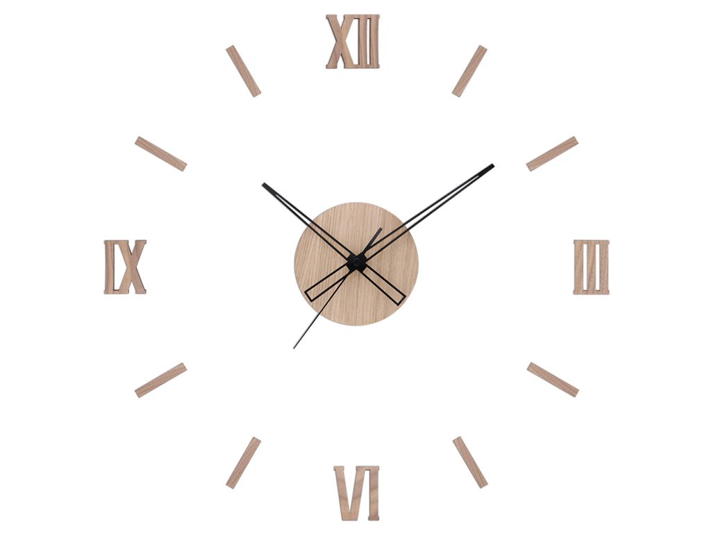 Ve spolupráci našeho grafického studia a naší výroby jsme nechali vyhotovit stále populárnější nalepovací nástěnné hodiny značky PRIM, pro které jsme netradičně zvolili vyřezávané římské číslice a indexy v barvách ořechu, dubu a jasanu. Odhlehčený design hodin působí moderním a čistým dojmem, díky kterému skvěle padnou do každého interiéru. Hodiny jsou vybaveny quarzovým strojkem, který je napájen 1 ks tužkové baterie AA.