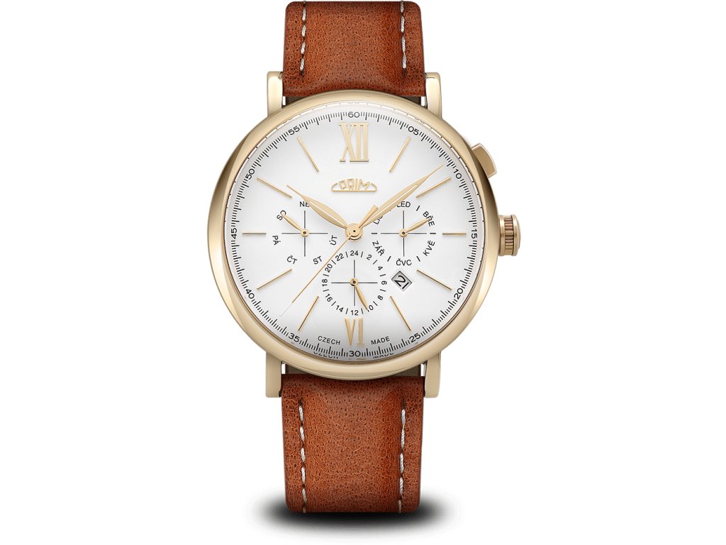 PRIM Retro Elegance 25 – elegantní pánské hodinky s kalibrem Miyota 9120, safírovým klenutým sklem, průhledným dýnkem a koženým řemínkem v různých barvách. Klasika v moderním pojetí. Nová kolekce pánských hodinek, která spojuje čistý design s precizním řemeslem.