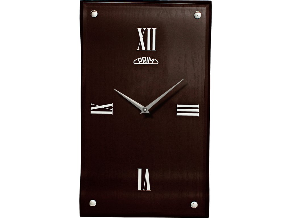 Dřevěné nástěnné hodiny PRIM v kombinaci skla a dřeva. Originální designové dřevěné hodiny PRIM.