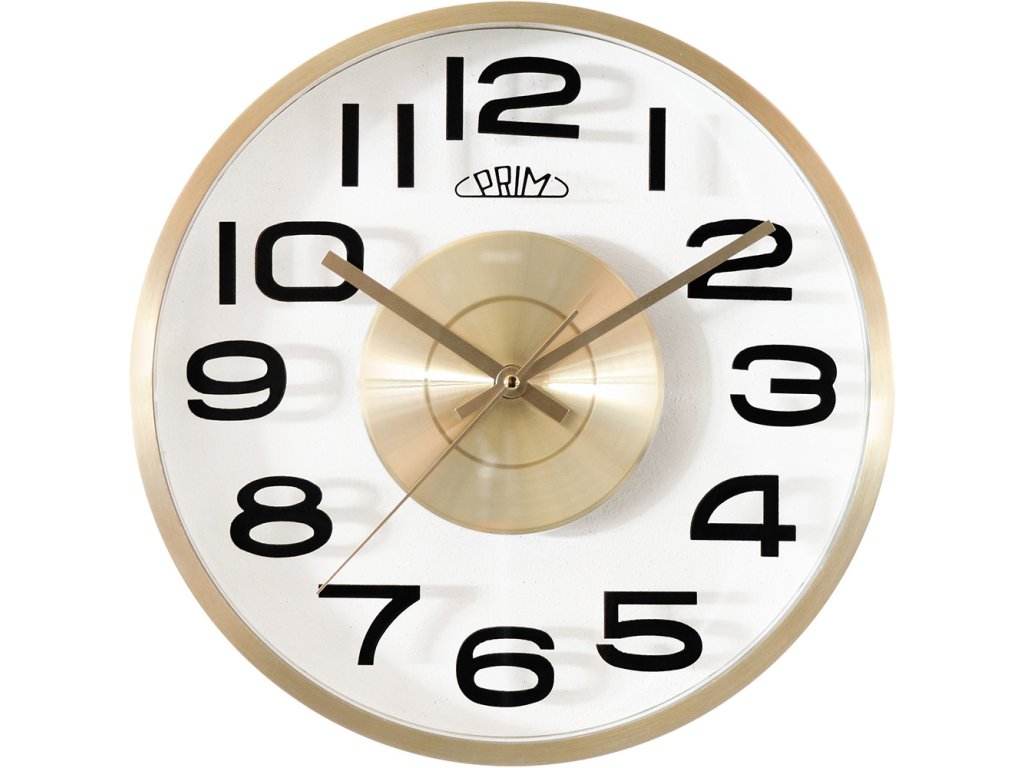 Hodiny mají velice exkluzivní vzhled. Vystouplým arabským číslicím černé barvy výrazně dominují obruč a střed číselníku s ručičkami, vyrobené z pozlaceného hliníku, které jsou umístěny za vysoce kvalitním minerálním sklem. Díky průhlednému číselníku se hodiny dokonale přizpůsobí barvě stěny, na které budou pověšeny, a stanou se pro Vaše hosty nepřehlédnutelné.