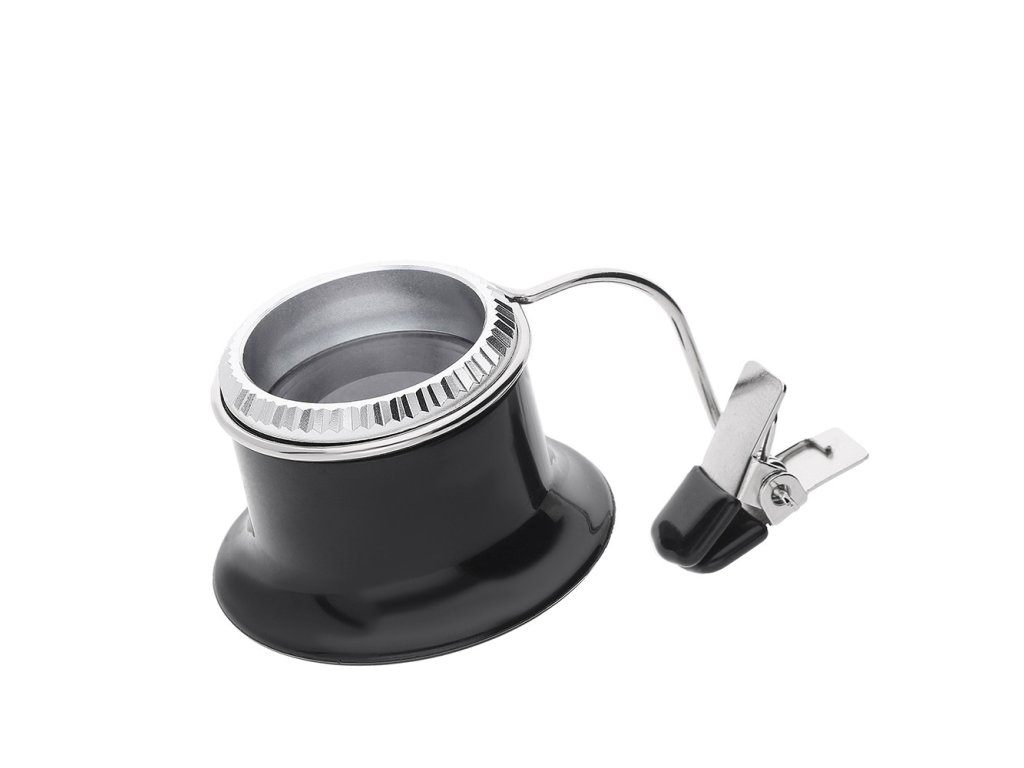 Hodinářská lupa nabízející desetinásobné zvětšení. Lupa disponuje jednou plankonvexní (ploskovypuklou) čočkou o průměru 23 mm. Průměr očnice je 38 mm. Součástí balení je kovová spona s žabkou pro uchycení. Skvěle se hodí pro práci s hodinkami, hodinami a šperky.