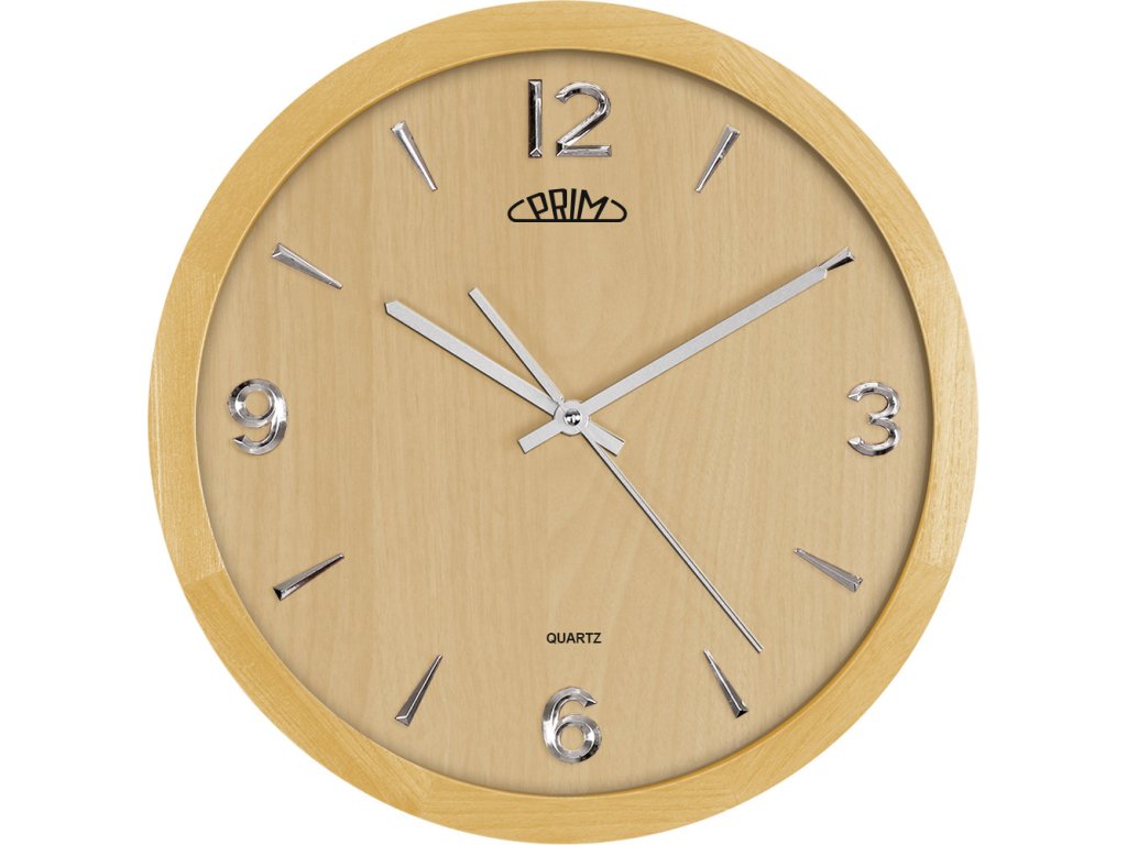 Dřevěné hodiny PRIM Wood Style zpříjemní každý interiér.
