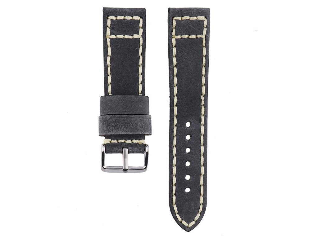 Kožený řemínek PRIM s výrazným ručním prošíváním a s klasickou stříbrnou sponou na trn.